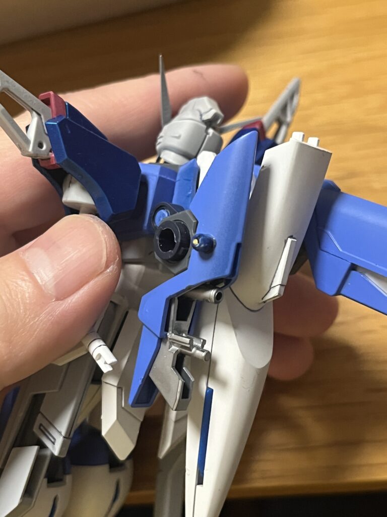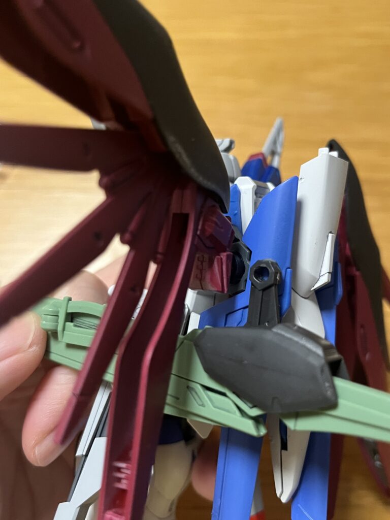 ライフリのバックパックの羽を外し、デスティニーの羽に変更します。ここは無改造で付け替えることが出来ました。続いてアロンダイトと名無し砲を付けれるようにしていきます。