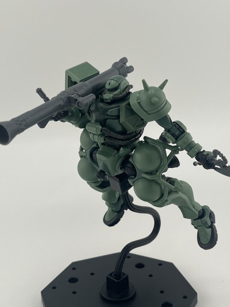良かった点はなんといってもザクバズーカです。大きい武器は持つのが難しかったりしますがこのバズーカはかなり構えやすかったです。持ち手部分が可動するのでしっかりと肩に担いだ上でスコープを覗けるのが最高です。