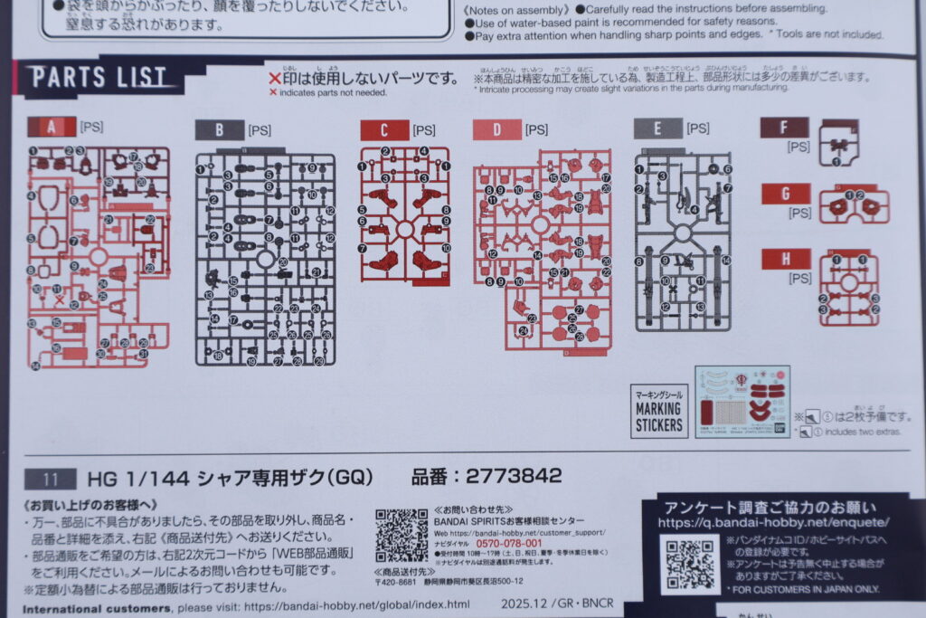 2025年12月6日発売のHG 1/144 シャア専用ザク(GQ)の素組レビューです。