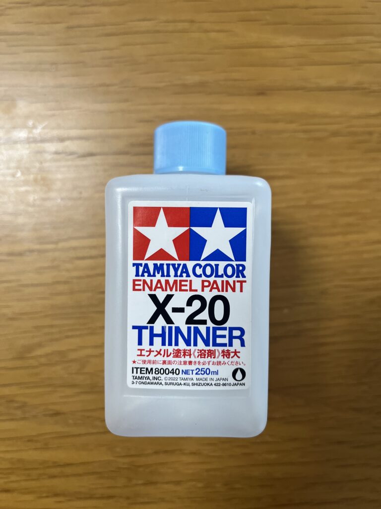 こちらのタミヤのエナメル溶剤で拭き取っていきます。綿棒に染み込ませて拭き取ります。