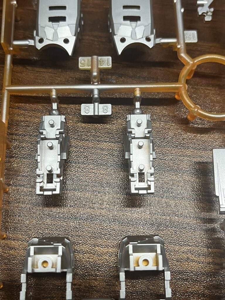 今回ランナー塗装でシルバーにしたいのがこちらのランナーたちです。このままですとエアブラシで塗装するのも難しいですし、いくら内部フレームだからといってランナー跡が多数出て、隠しきれなくなってしまいます。