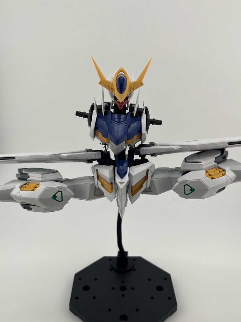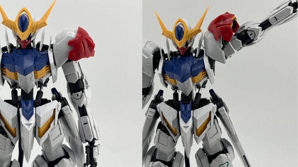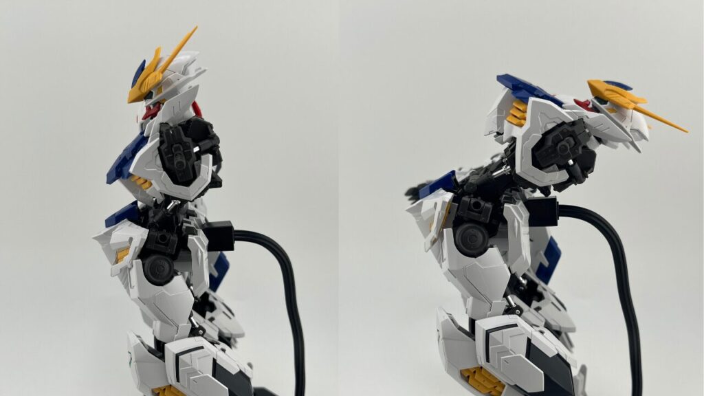 かなり大きな肩アーマーを持つバルバトスルプスですがかなりの高さまで腕を上げることができます