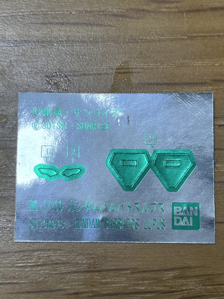 マーキングシールが2枚です。目と膝の緑の部分用のシールとデカールです。