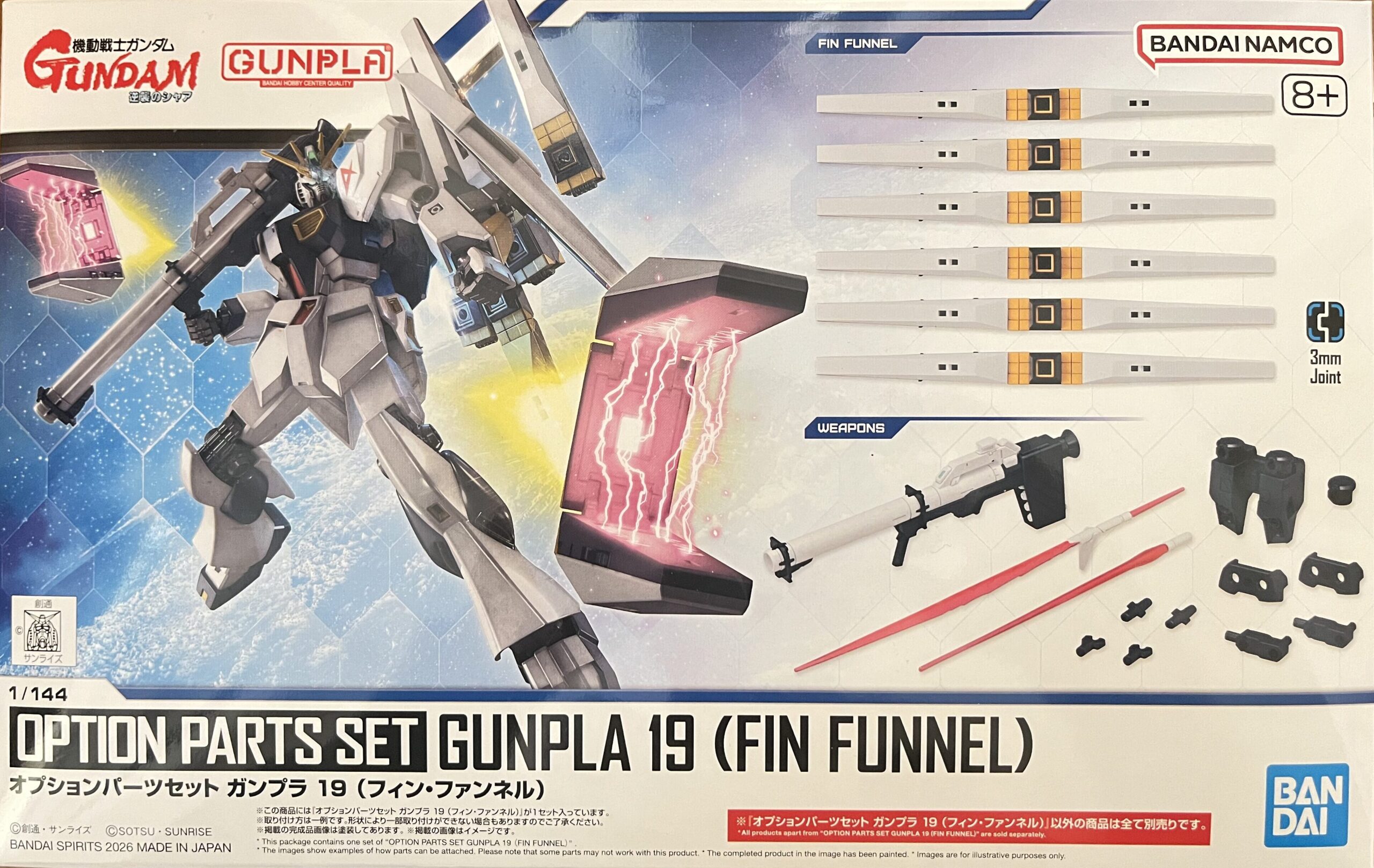 今回は2025年1月24日発売のオプションパーツセット ガンプラ 19 (フィン・ファンネル)をレビューしていきます。
