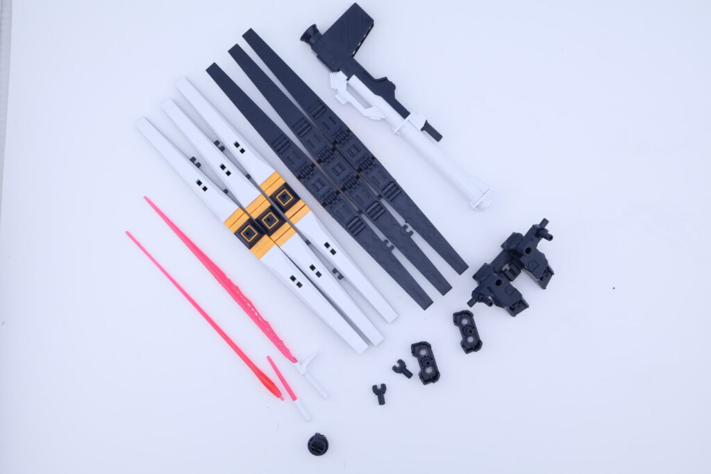 フィンファンネル6機、バズーカ、ビームサーベル2本、バックパック接続用のパーツとなっています。
