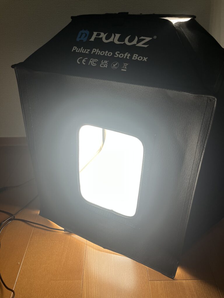 こちらAmazonでは PULUZ 撮影ボックス 40cm折りたたみ式撮影ブース 物撮り用ボックス 簡易スタジオ ソフトボックス 480PCSランプビーズ 5500K 無段階調光 4色PVC背景&ディフューザー付き 卓上写真スタジオ 携帯便利/組立簡単/収納便利 自宅商品撮影 卓上撮影キット (40cm) という商品名です。